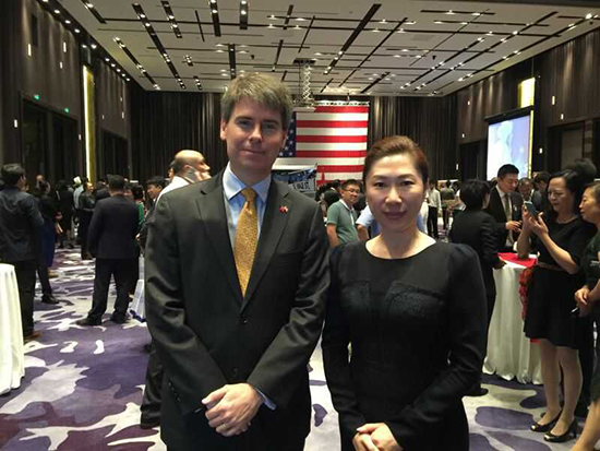 我校副董事长、副校长刘欣与美国驻沈阳总领事馆总领事闻思国在活动现场
