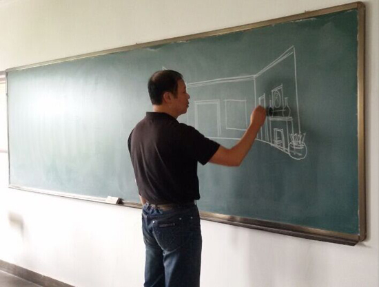 左钢副院长通过板书和图示,结合我校学生的现状,介绍了符合当代舞台美术教学的技巧和方法。从前期课堂准备、角色互相,到如何扬长避短进行了有针对性的讲述,使在场教师明白如何更好地驾驭课堂,调动课题氛围。
