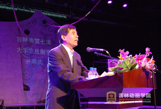 省文联党组书记、省文联主席尹爱群讲话并宣布开幕。他表示“在这温馨四溢的青春剧场,吉林省大戏节的朋友们又相聚相逢了。这将是一道青春美丽的人文景观,也正成为我省文化建设的一张闪亮名片。我省的大学生戏剧节自2004年开办以来,一直得到了省委、省政府、省委宣传部的高度重视和正确领导,得到了省财政厅、省文化厅、团省委的鼎力相助与合作,得到了省艺术研究院及各专业院校、团体以及广大文化工作者的支持与协助。我们的大戏节活动越来越具质量,越来越具影响,为我省校园文化建设、戏剧事业的推广及人才的培养,抒写了积极的昂扬向上的篇章。本届大学生戏剧节将有长春、吉林、延边等不同地区的20多所大专院校的近30个剧目踊跃参赛,包括话剧、小品等不同的戏剧形式,原创、改编、搬演等不同的创作类型,实验剧、探索剧、先锋剧、传统话剧等不同的艺术探索。无论是演绎经典,还是原创曲目,都体现着积极向上、勇于追求真、善、美的道德情操。可以说,未及开演,我们已经感受到了青年学子们那份一脉相承、奔腾不息的青春激情。我们将通过一届又一届的大学生戏剧节,传播先进文化,宣传社会主流价值观,通过青春戏剧,展现莘莘学子对于戏剧、对于人生的思考,通过文化的盛会,展露戏剧艺术最为本真的风采!”