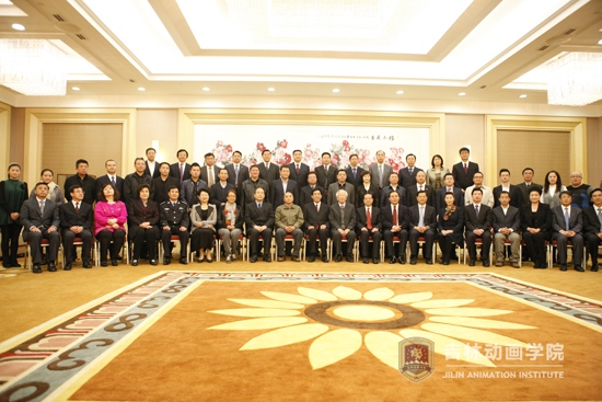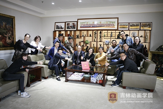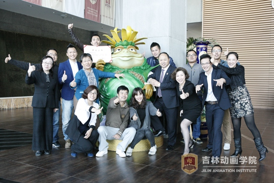 董事长郑立国、副董事长刘欣与3D动画电影《青蛙王国》部分主创人员在一起
