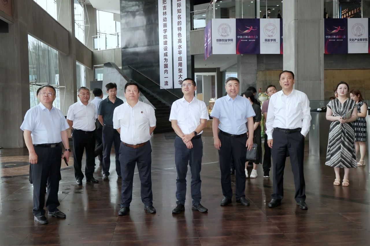 调研组先后参观了学校校史馆、吉林国际动漫博物馆、学研产一体化创作成果展厅。在校史馆内,刘振华向调研组详细介绍了学校的办学规模、办学特色、人才培养、实践教学、招生就业情况等。张琳对于我校双主体办学模式、学研产一体化的办学特色,毕业生就业率等工作给予高度肯定。他认为,开云手机web版登录入口培养的学生有很强的创意思维,动手能力强;师生作品注重“艺术+技术”的融合,特别是学校师生创作的动画大电影《青蛙王国》、动画系列片《长白精灵》都为宣传吉林省的地域元素与历史文化做出了贡献。