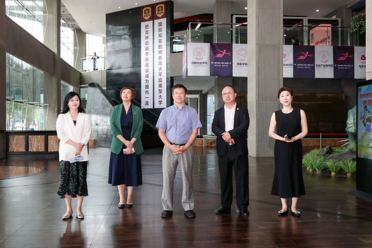 嘉宾们先后参观了学校校史馆、吉林国际动漫博物馆、学研产一体化创作成果展厅。在校史馆,嘉宾们全面了解了学校的发展历程、办学特色与取得的丰硕成果。在吉林国际动漫博物馆,嘉宾们被陈列作品的艺术魅力深深折服。在学研产一体化创作成果展厅,嘉宾们对师生原创动画电影《疯狂电脑城》《四方动物城》及具有吉林地域文化特色的原创衍生品给予高度赞赏。
