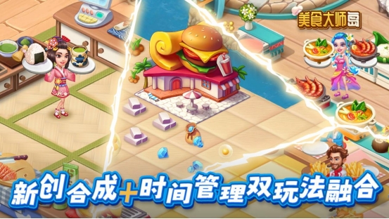 《美食大师岛》是一款以合成为主,创新融合时间管理的双玩法合成+时间管理游戏。游戏中,玩家将化身为美食探险家,在一座奇妙群岛中探索,结识数位身怀绝技的大厨,协助他们搭建餐厅,制作各具特色的美食,招待来自五湖四海的宾朋。在轻松休闲的氛围与琳琅满目的料理中,获得解压和视觉的双重享受。