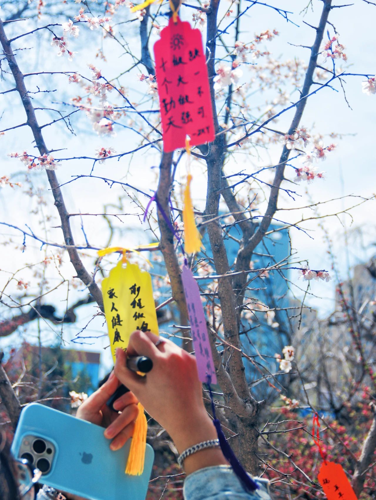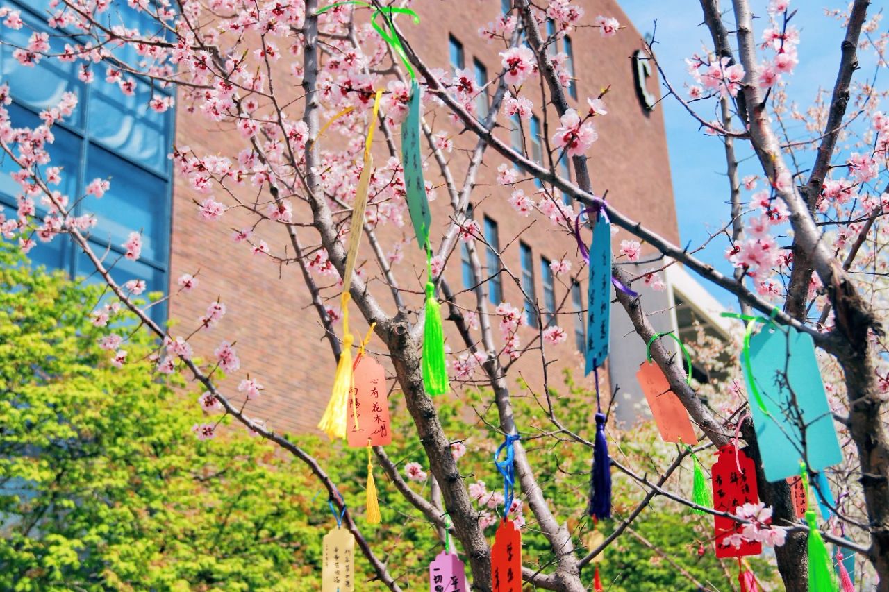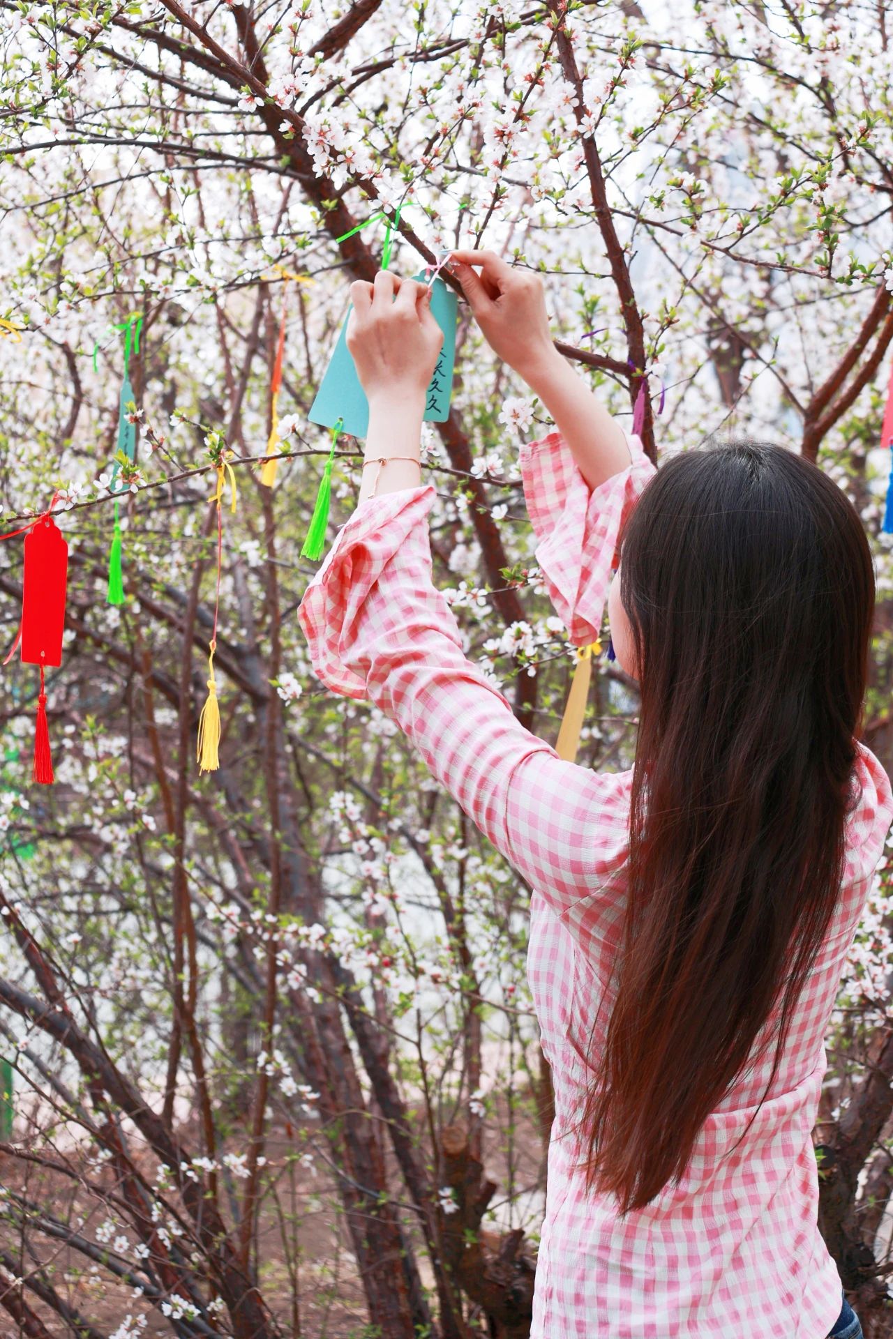 挂满书签的杏花树