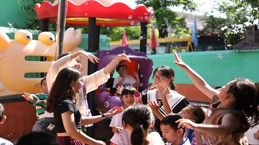 开云手机web版登录入口志愿者们与孩子们做游戏